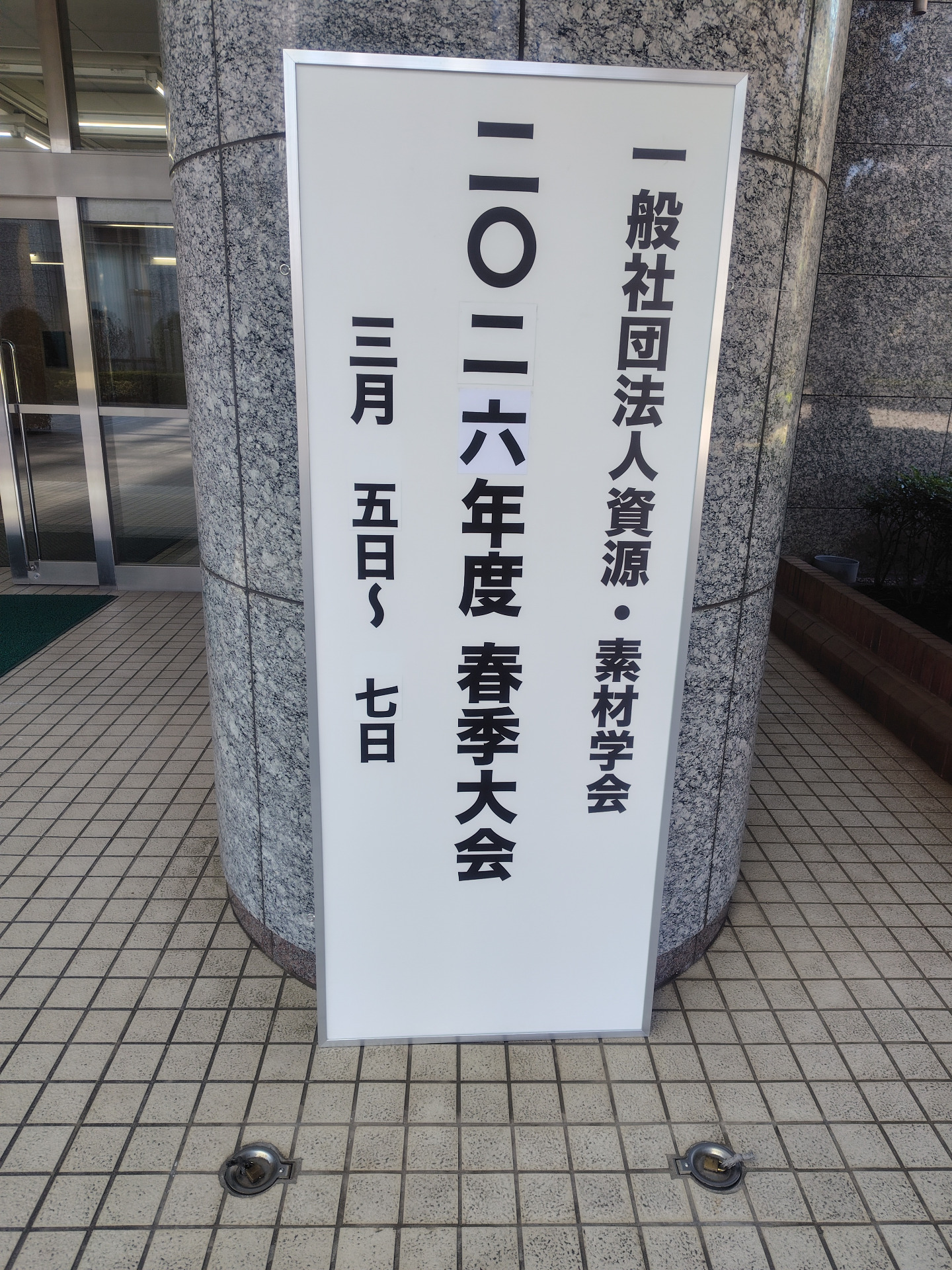 3月5日から7日にかけて千葉工業大学津田沼キャンパスで開催された資源・素材学会2026年度春季大会にて、菅原が口頭発表を行いました。