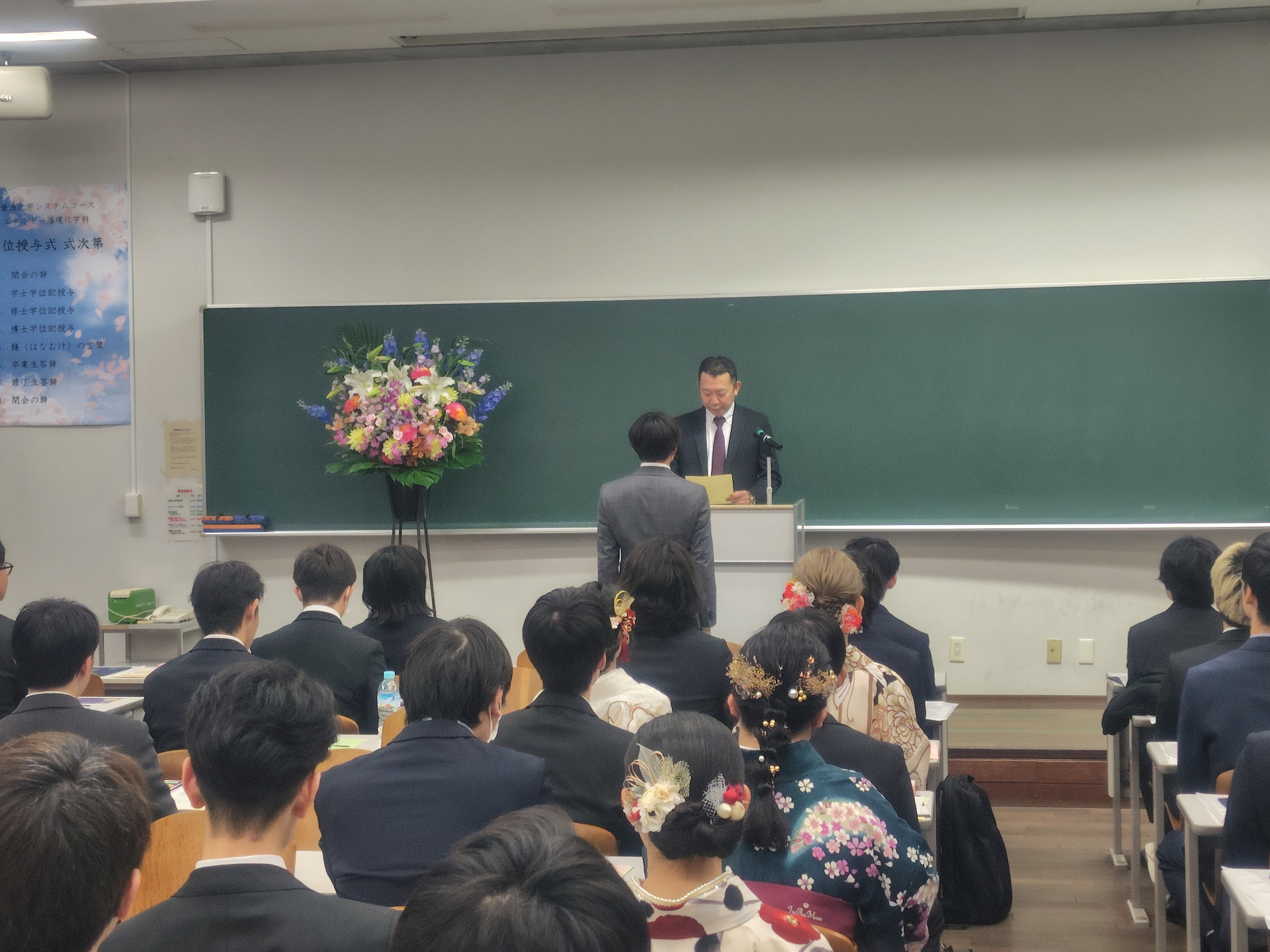 2025年度学位授与式が挙行され、修士4名、学士2名の学位が授与されました。